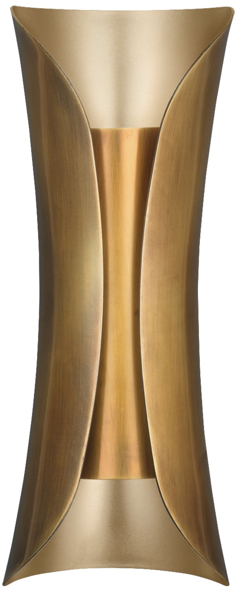 Clear fluted glass cinched with a belt of polished vintage brass gives the double sconce its sophisticated flair and intriguing mix of textures.
