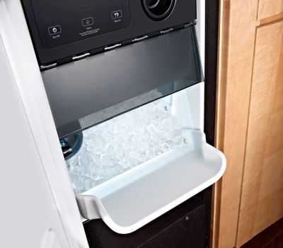 In the u.s.a., register your ice maker at . Storage capacity, drop down door & accepts custom panels. We have an under counter (separate) kitchen aid ice maker that is leaking again. I plan to replace it in the existing under counter cavity with a garbage compactor. The model number is located on the inside of the ice maker.